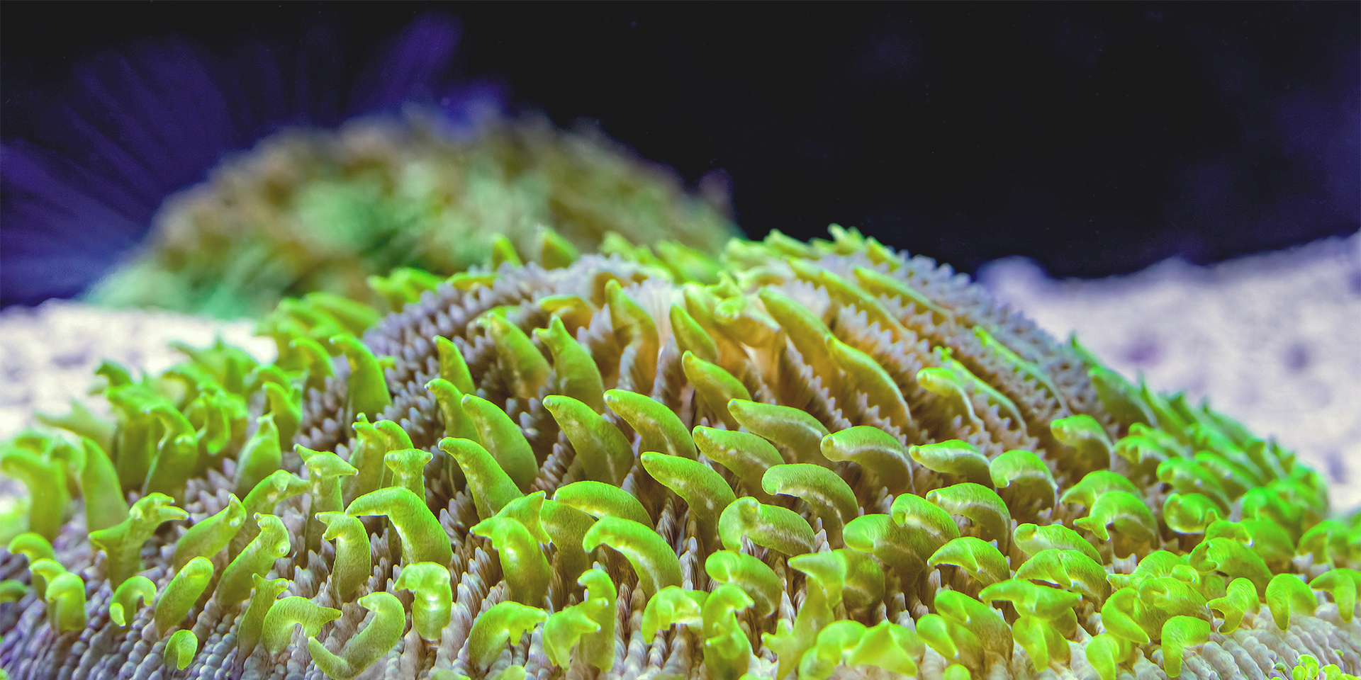 外形小巧精致,色彩绚丽夺目,部分品种带有独特纹路和荧光效果;具有一定攻击性,与其他珊瑚混养需预留足够空间。