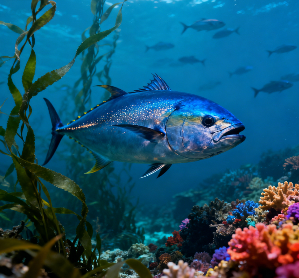 成体 2-3 米,名贵食用鱼(生鱼片顶级原料),深海洄游,野生种群濒危。